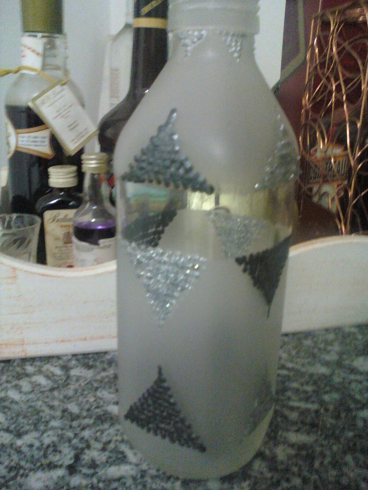 Nesta garrafa eu só usei a tinta dimensional com desenhos simétricos, não usei verniz vitral...